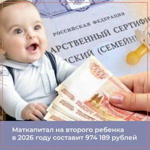 Размер материнского капитала в 2026 году составит примерно 737 тысяч рублей на первого ребенка и около 974 тысяч рублей на второго.