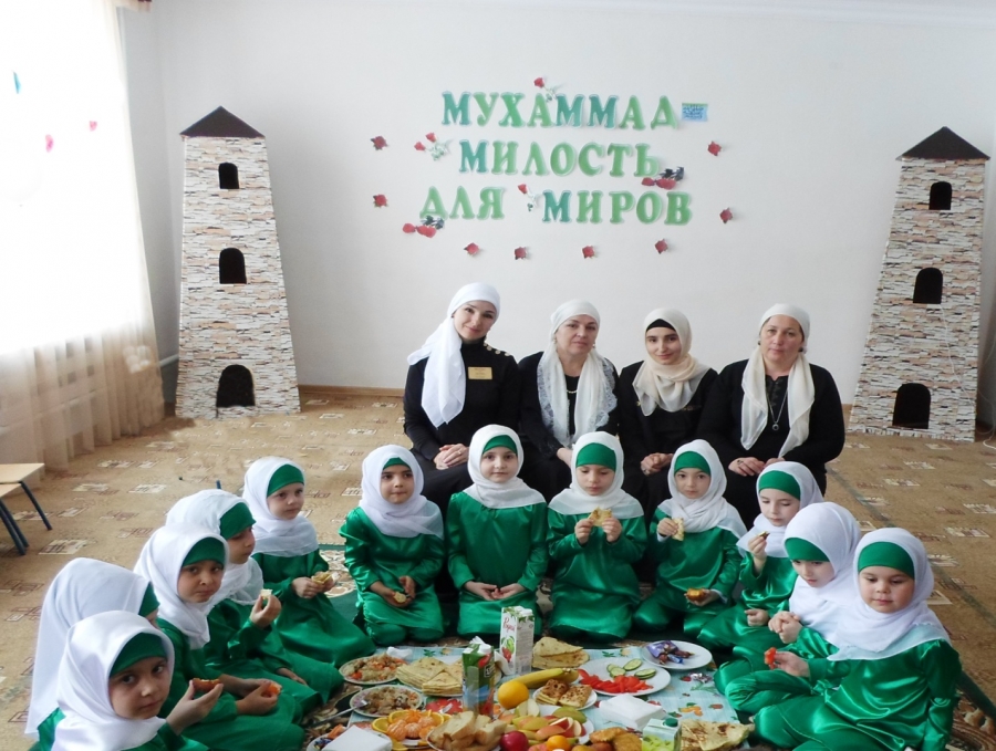 17.12.2017В МБДОУ №5,9 Наурского муниципального района прошли мероприятия, посвященные ко Дню рождения Пророка Мухаммада (с.а.в). Цели: духовно-нравственное воспитание дошкольников, привить любовь и уважение к Исламу; познакомить с историей рождения и ранним детством Пророка Мухаммада (с.а.в), воспитанники старших и подготовительных групп читали стихи и сунны из Корана, показали инсценировку. Мероприятие завершилось чтением Мовлида. Воспитанники получили угощение, сладости и фрукты.